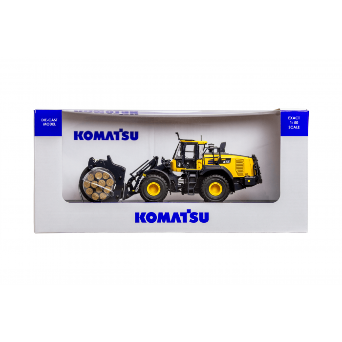 This 1:50 scale die-cast wheel loader collectible is a faithful high-end reproduction of the original Komatsu WA475-10 highly detailed: the cab interior, loader, top, and even side panels are faithfully reproduced.